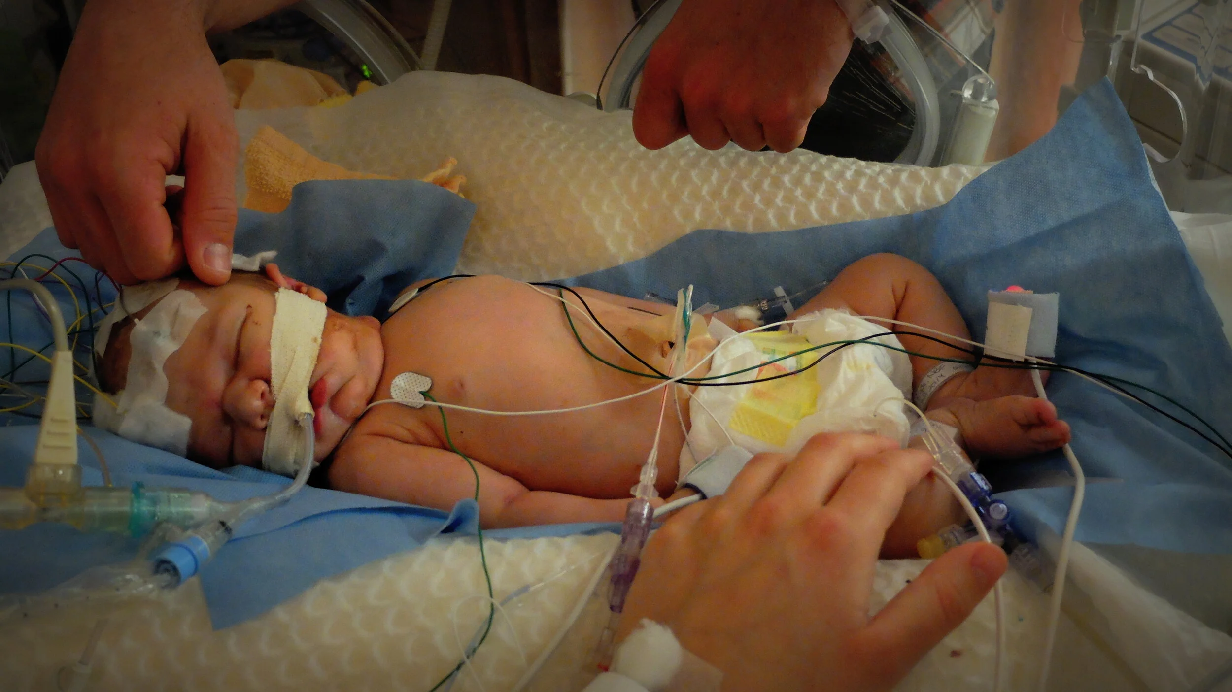 She required intensive resuscitation at birth with CPR, intubation, ventilation, and emergent administration of epinephrine. On arrival at the NICU, she began therapeutic hypothermia to prevent further injury to the parts of the brain that did not receive enough oxygen at birth. After 72 hours, she would be gradually rewarmed and undergo testing to assess the extent of the damage to brain tissue.